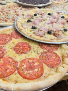 主力商品はなんと言っても多種多様なピザです。欧州からの移民も多かったブラジルでは、ピザは国民食です。ブラジルのピザの特徴は「具材をたっぷりのせること」です。日本のピザに比べてトッピングの量が多く、非常に食べ応えのある仕上がりになっております。また、カトゥピリ(クリームチーズ)、カラブレーザ(スパイシーソーセージ)、パルミート(ヤシの新芽)等独自の具材を使うことも特徴です。